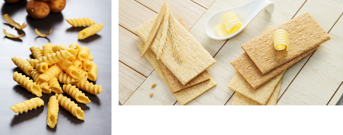 Wir konstruieren und fertigen Nahrungsmittelextruder und die zugehörigen Maschinen für die Herstellung von extrudierten Snacks, Frühstückscerealien, coextrudierten Produkten und Flachbroten.